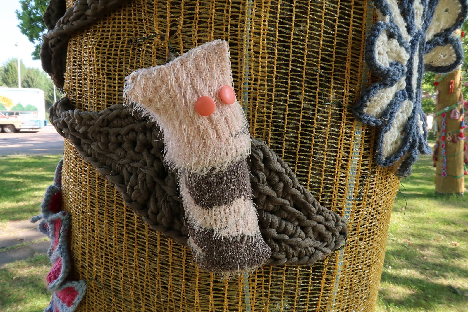 Jokivarsireitti vei Myllykoskelle, joka kai monen muun lähistön pienemmän keskuksen kanssa kuuluu nykyään Kouvolaan. Myllykosken keskusta tarjosi silmäniloa mm. kirkon edustan suihkulähteen ja jonkinlaisen käsityötaideinstallaation muodossa. Tuosta jälkimmäisestä ei osunut silmiin mitään tarkempaa infoa, mutta kovasti koristeltuja olivat torin viereisen puiston puut.